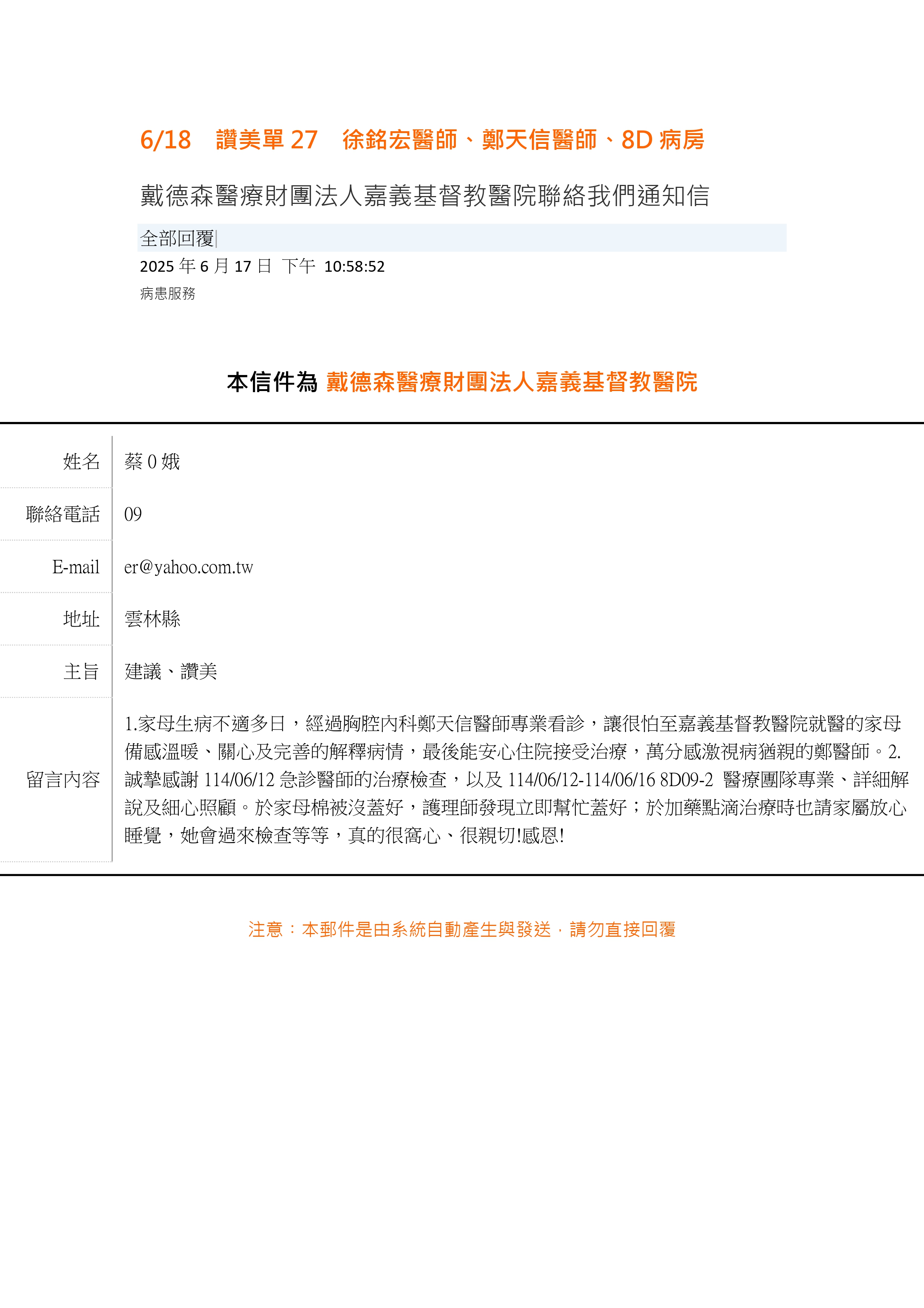 愛是永不止息- 來自家屬的肯定及感謝 嘉基 胸腔內科鄭天信醫師【妙手回春】