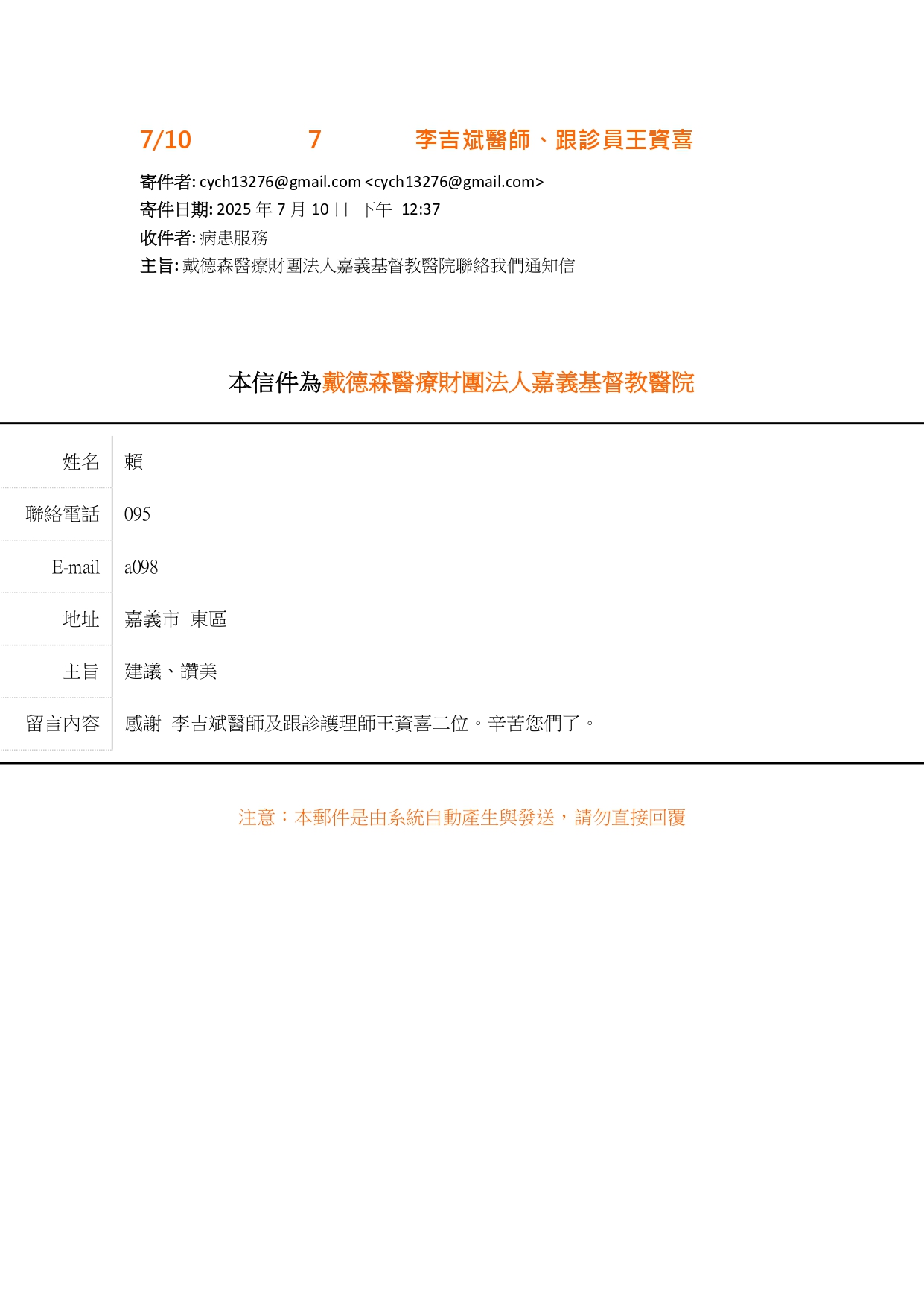 愛是永不止息 來自病人 家屬 的肯定及感謝 嘉基 心臟血管科李吉斌醫師【視病如親】