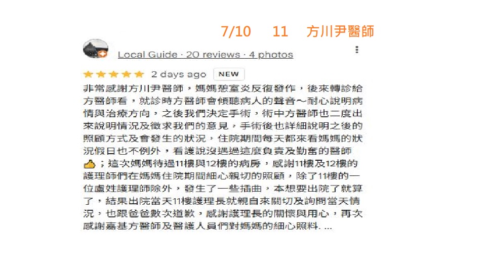 愛是永不止息 來自 家屬 的肯定及感謝 嘉基 大腸直腸外科方川尹醫師【大醫精誠】