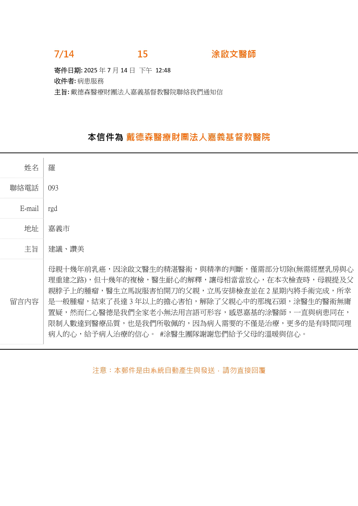 讚美一般外科涂啟文醫師