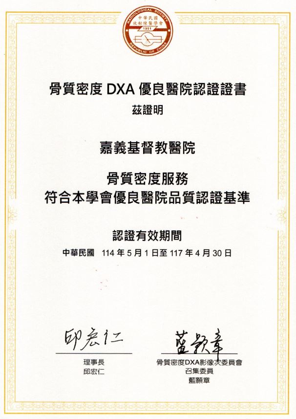 賀!本院影像醫學科榮獲「骨質密度DXA優良醫院認證」