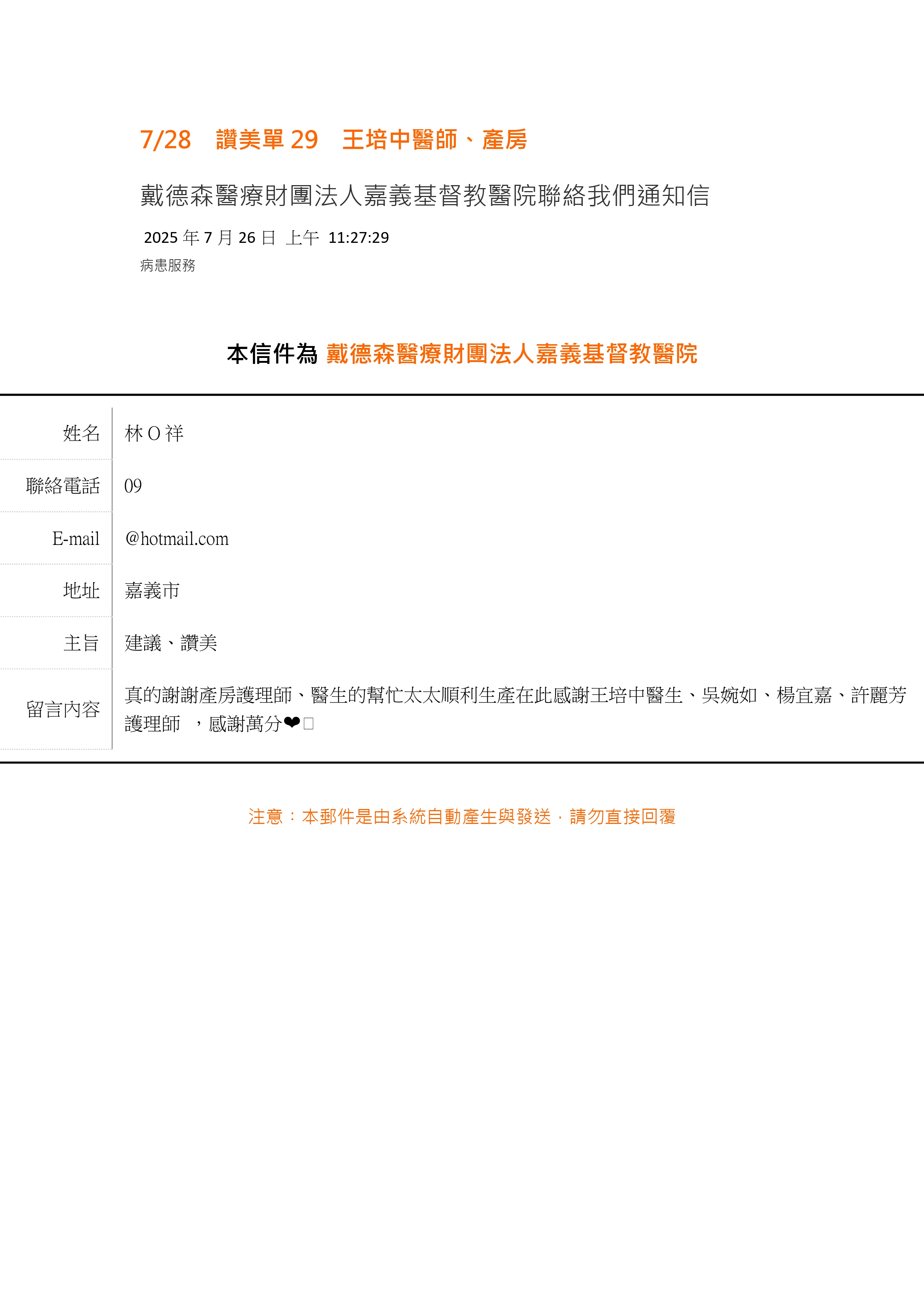 讚美 婦產部 王培中醫師