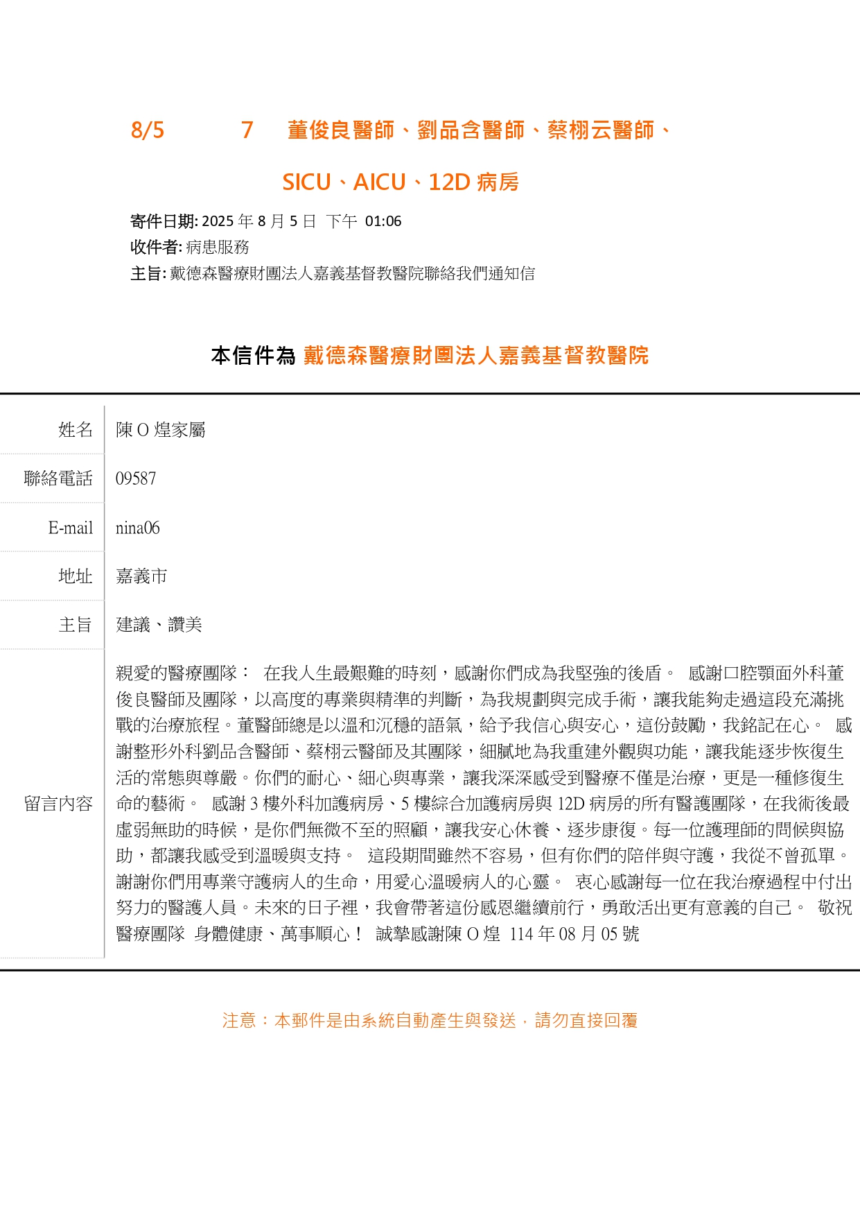 愛是永不止息 來自 家屬 的肯定及感謝 嘉基 口腔顎面外科董俊良醫師【大醫精誠】