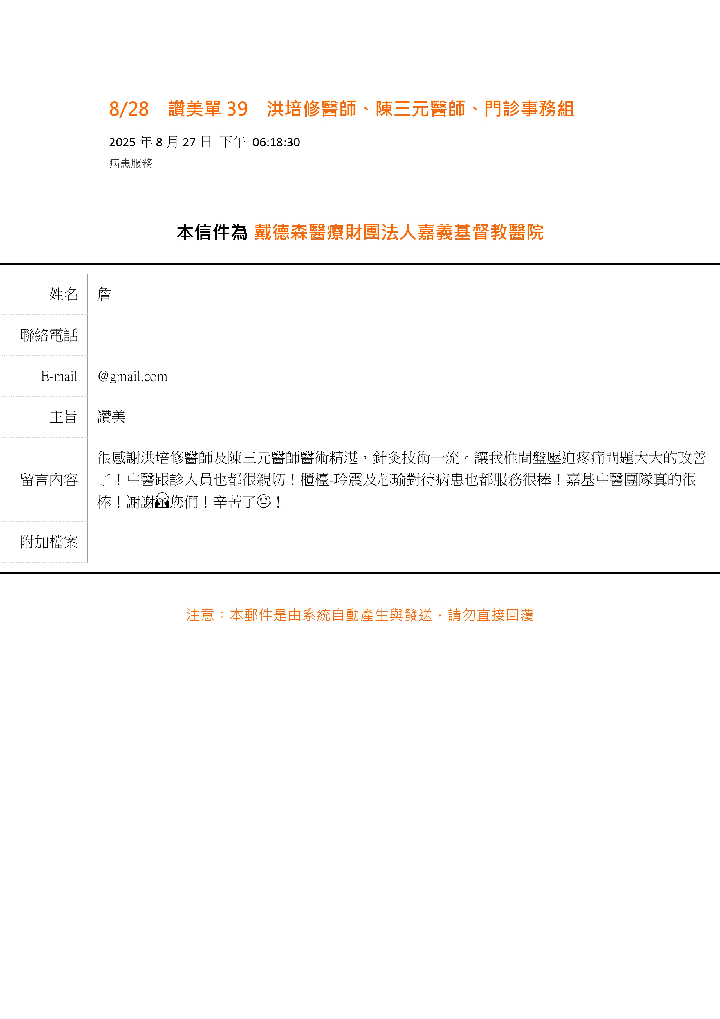 愛是永不止息- 來自病人的肯定及感謝 嘉基 中醫部陳三元醫師【醫術精湛】