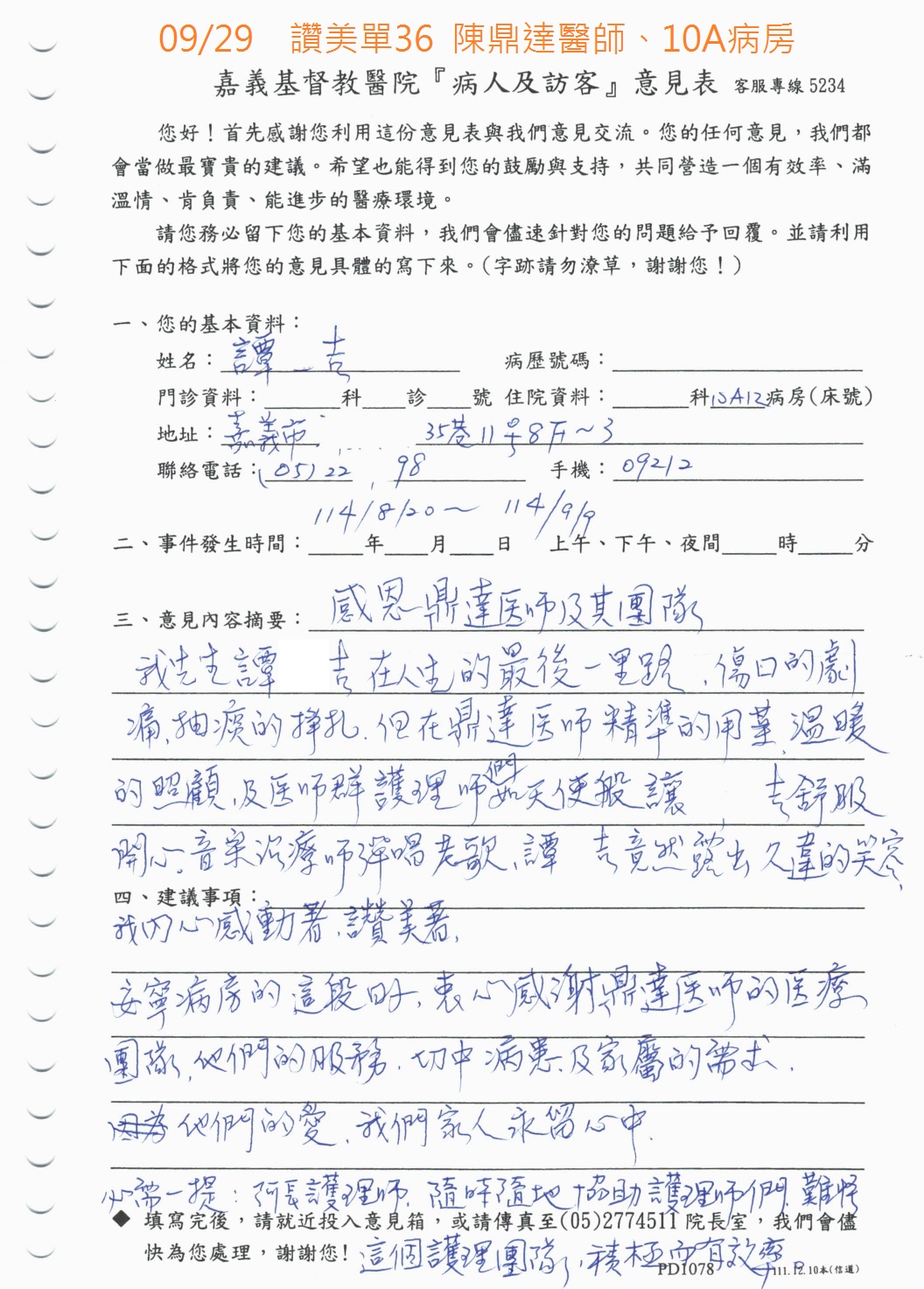 讚美 家庭醫學科 陳鼎達醫師