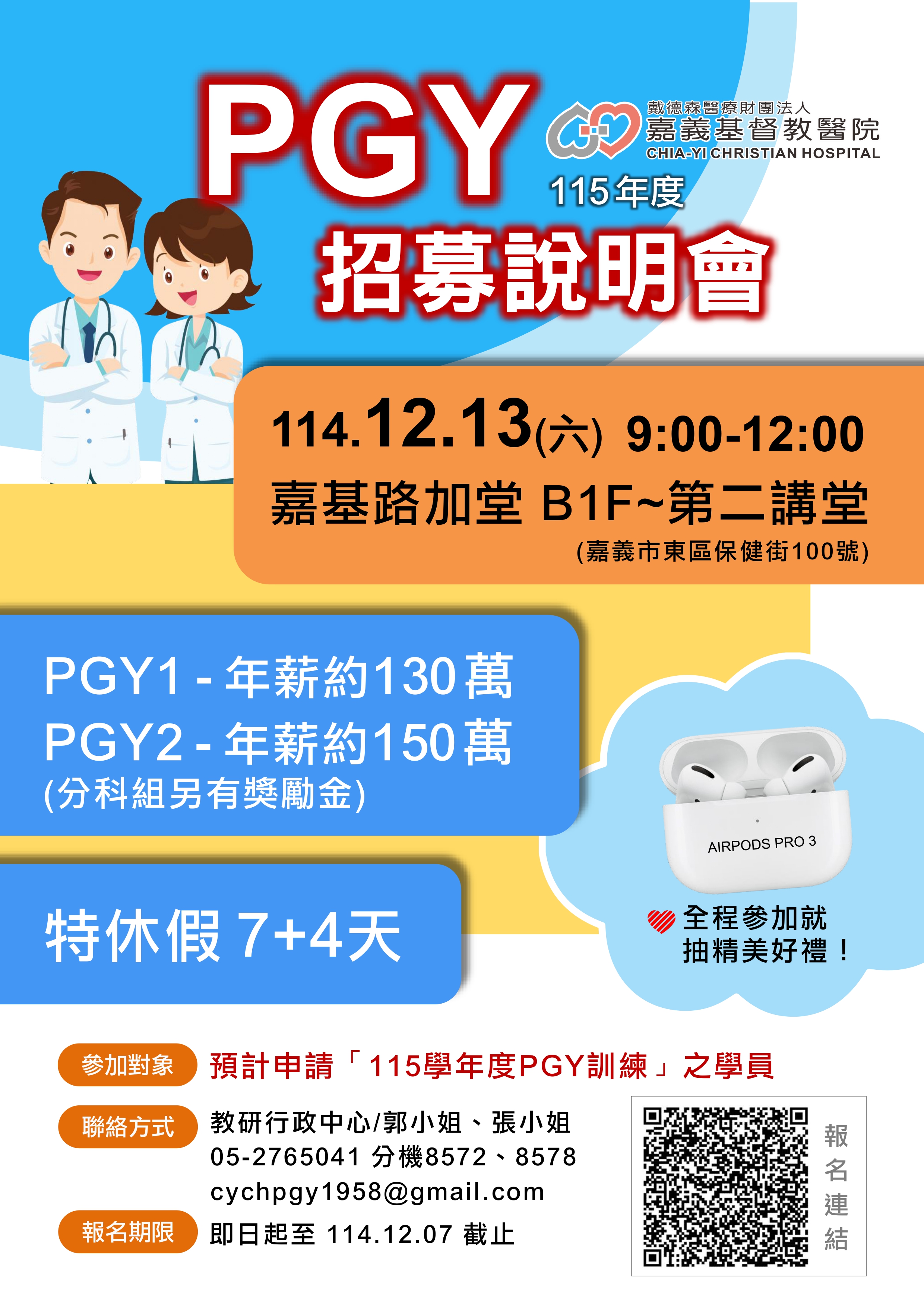 【嘉義基督教醫院 115 年度 PGY 招募說明會】