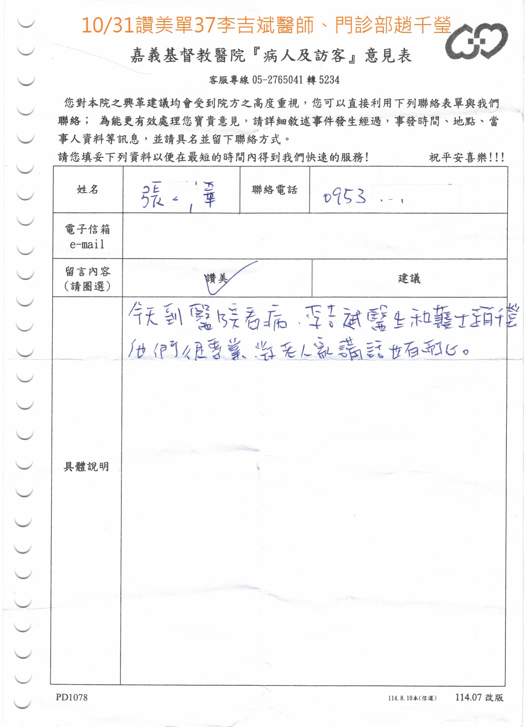 愛是永不止息- 來自病人的肯定及感謝 嘉基 心臟血管科李吉斌醫師【懸壺濟世】