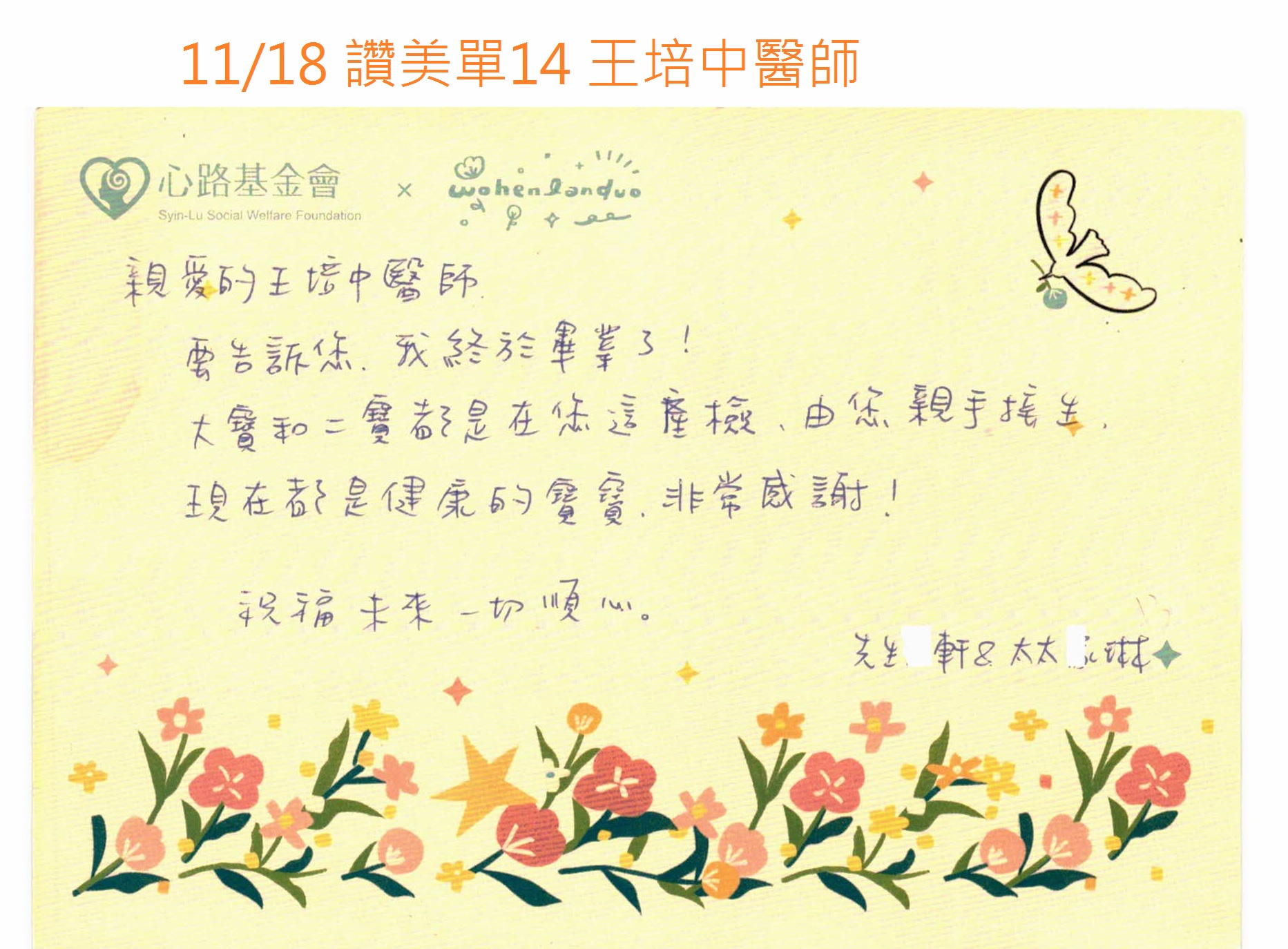 愛是永不止息- 來自病人的肯定及感謝 嘉基 婦產部王培中醫師【醫術精湛】