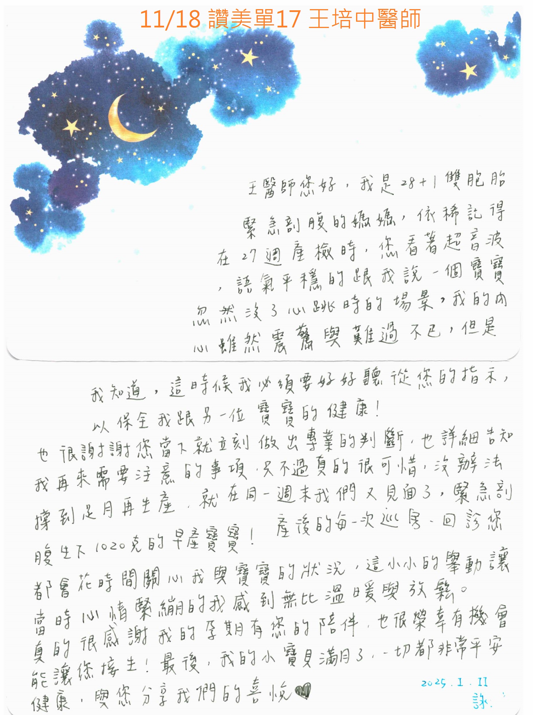 愛是永不止息- 來自病人的肯定及感謝 嘉基 婦產部王培中醫師【視病如親】