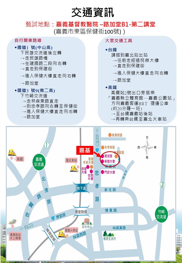 📍甄試地點:嘉基路加堂B1-第二講堂