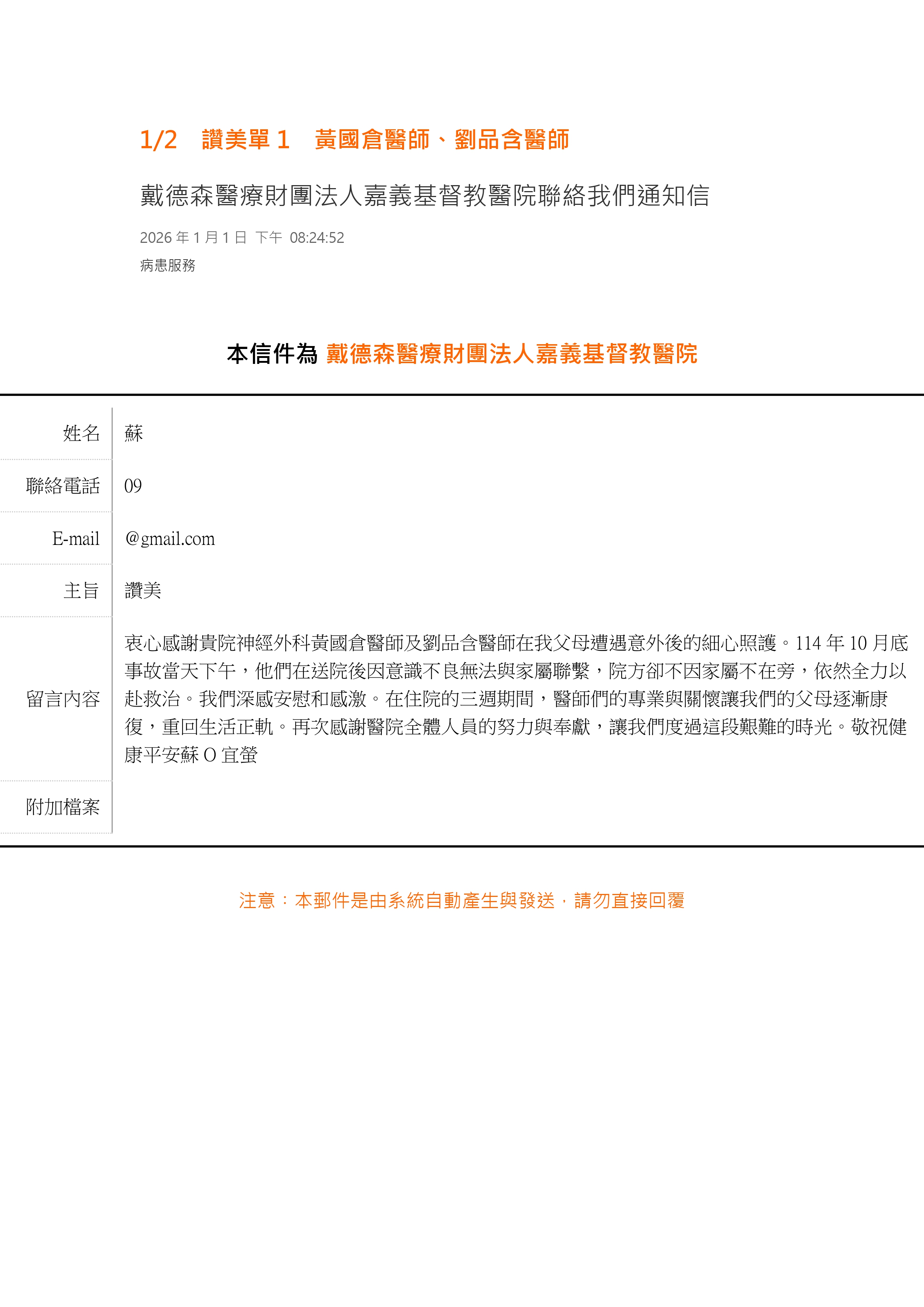 愛是永不止息- 來自家屬的肯定及感謝 嘉基 整形外科劉品含醫師【醫人醫心】