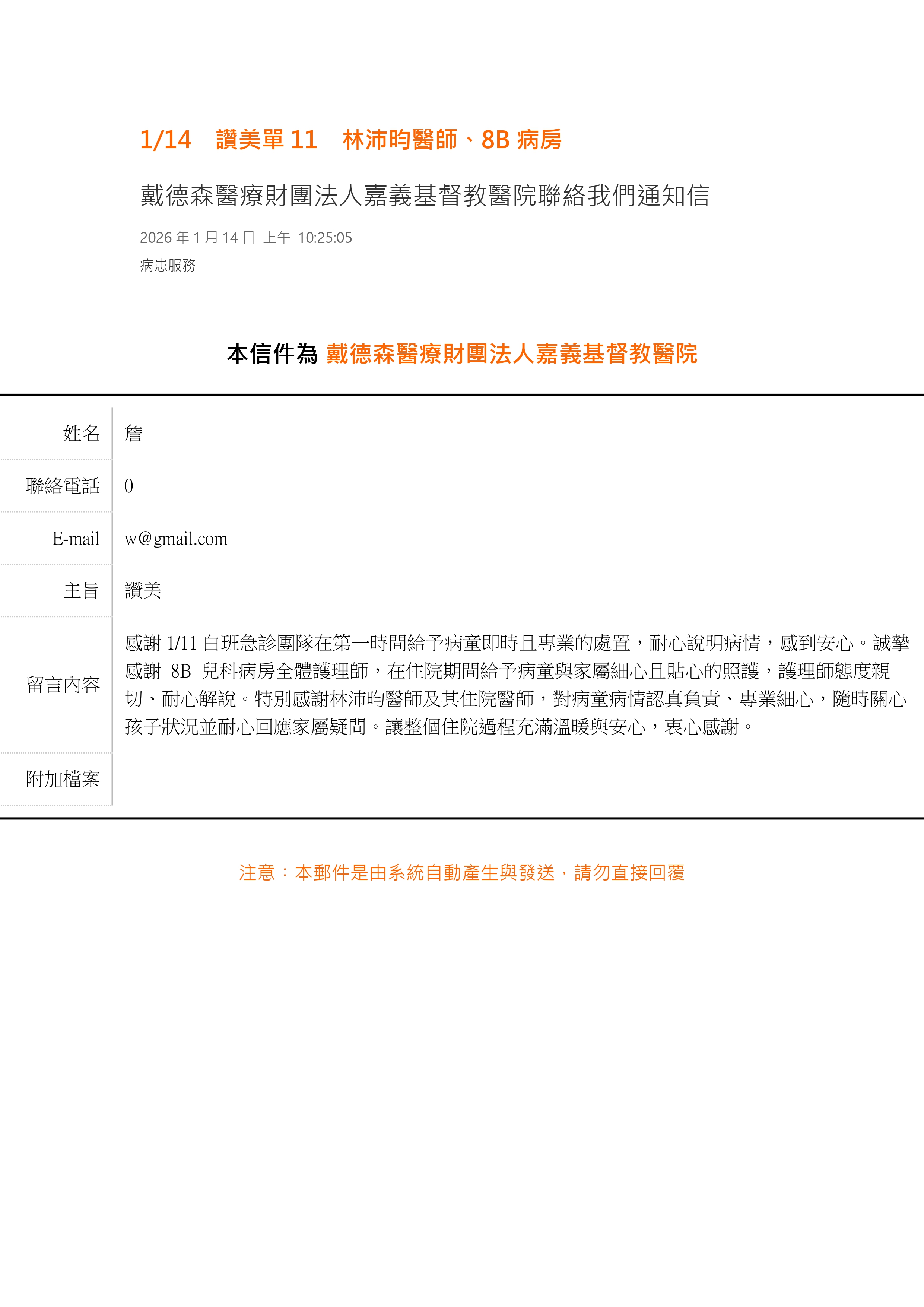 愛是永不止息- 來自家屬的肯定及感謝 嘉基 兒童醫學部林沛昀醫師【視病如親】