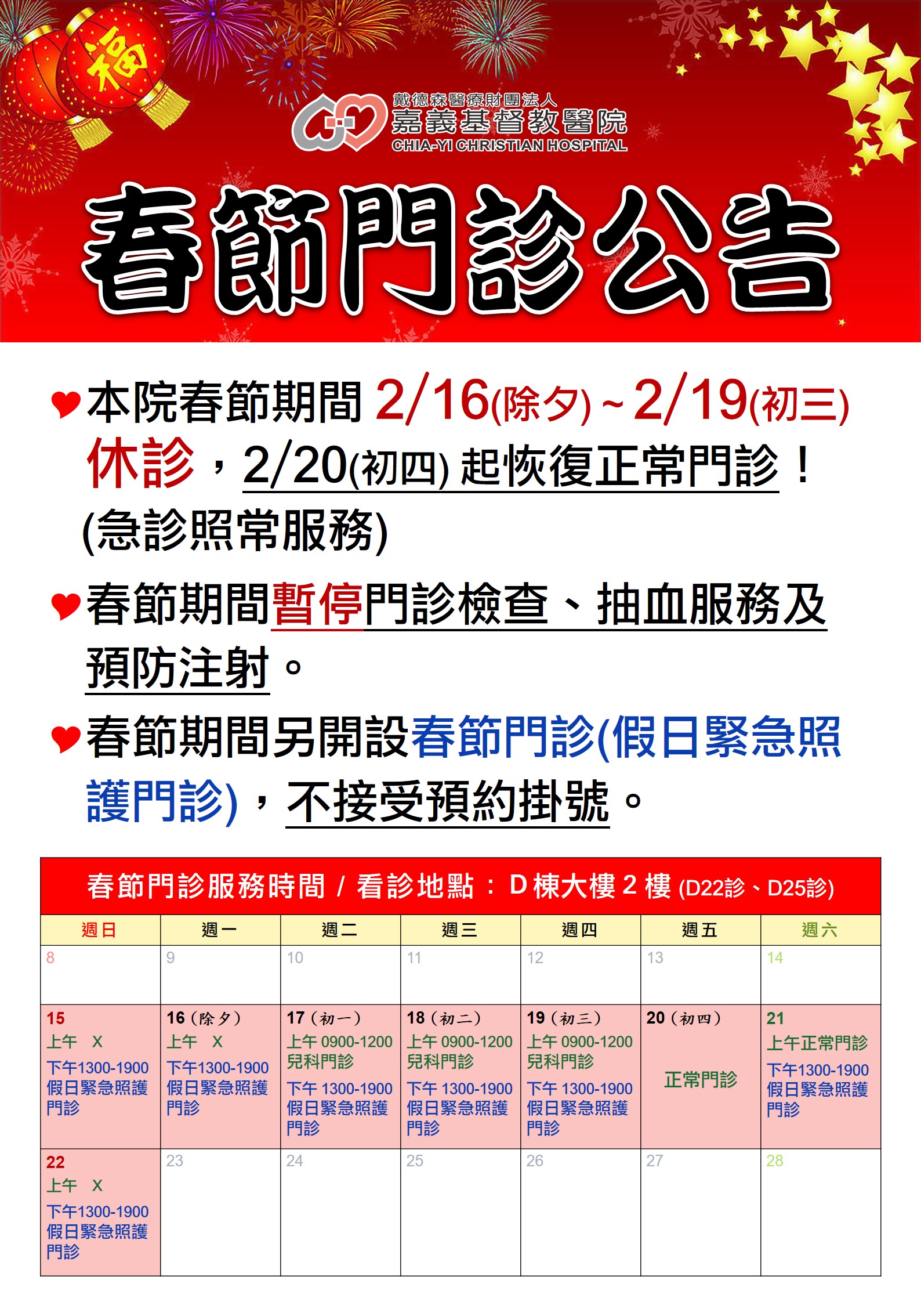 2026春節門診公告