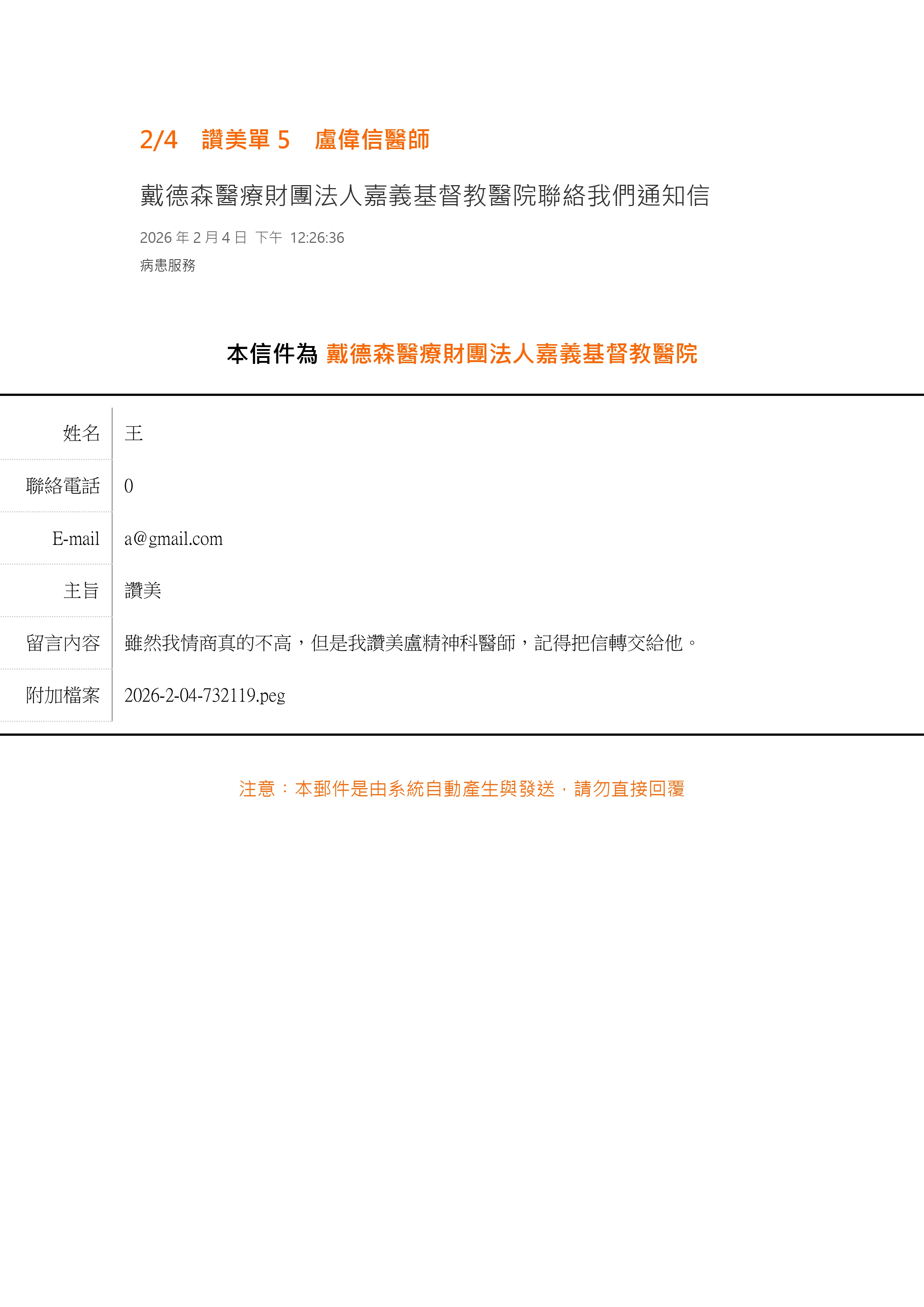 讚美 精神科 盧偉信醫師