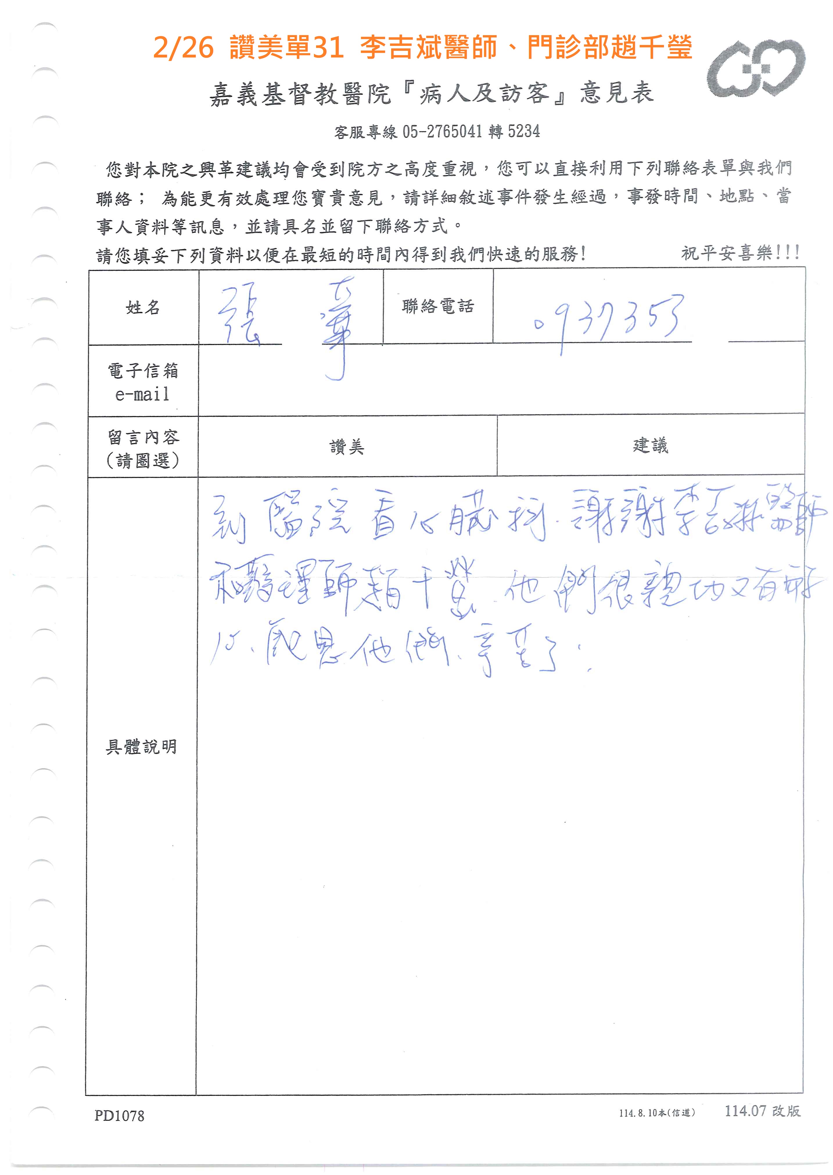 愛是永不止息 來自家屬的肯定及感謝 嘉基 心臟血管科李吉斌醫師【視病如親】