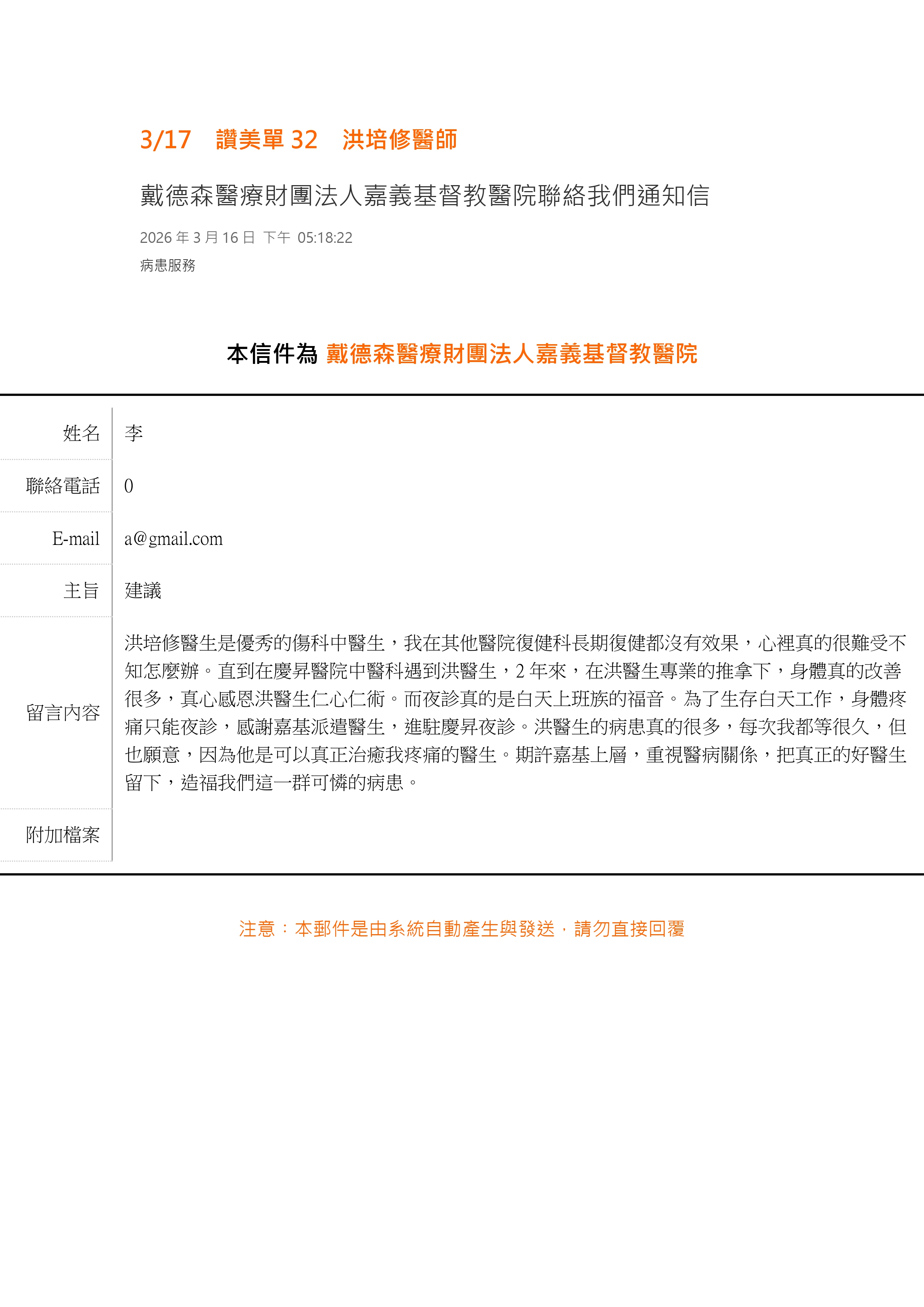 愛是永不止息- 來自家屬的肯定及感謝 嘉基 中醫部洪培修醫師【仁心仁術】