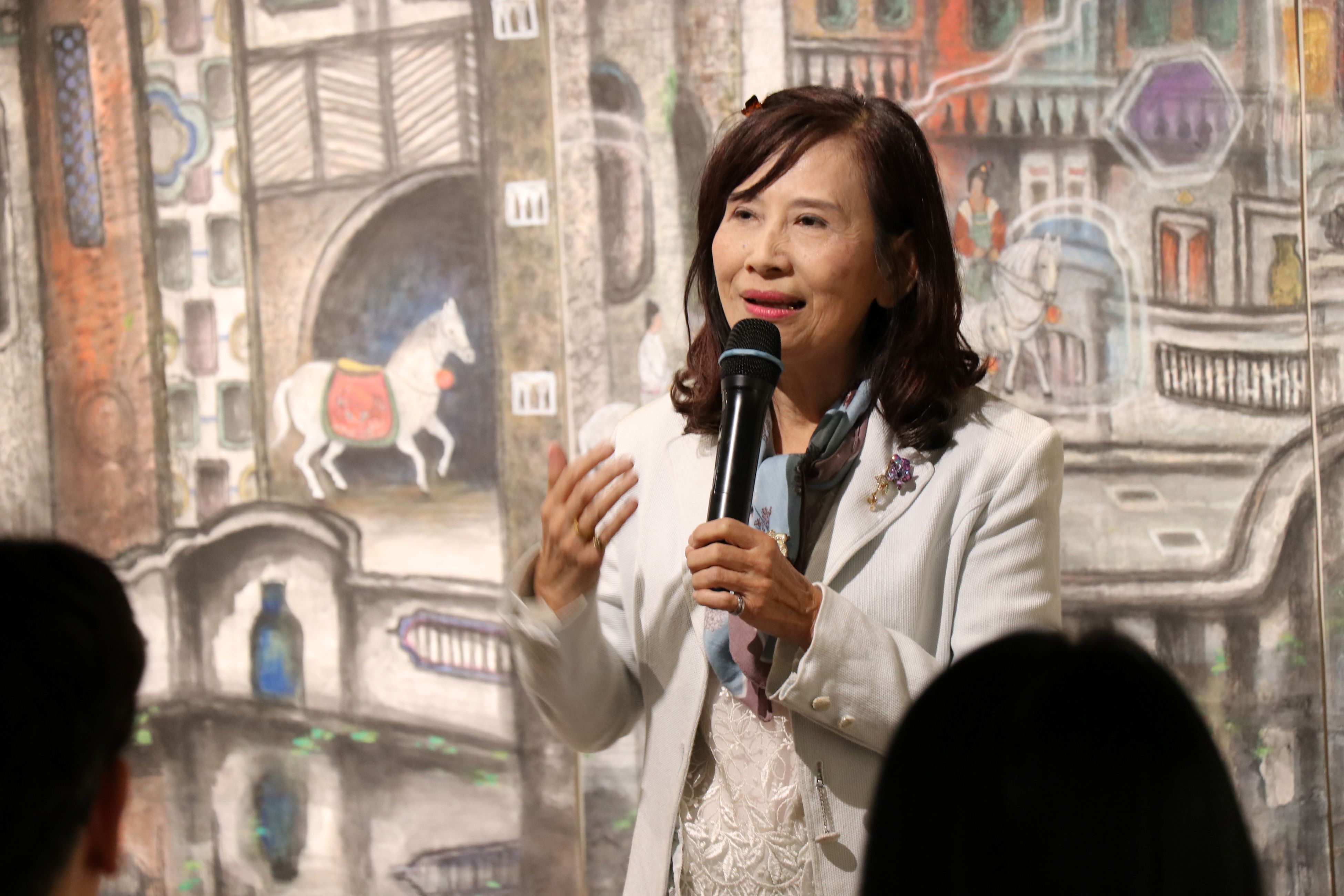 開展茶會中,黃老師表示,「迎向應許之地」象徵對生命恩典的體會與對未來的盼望。她指出,畫中的馬承載著信心與祝福,「即使仍在路上,也相信前方有光、有方向。」期盼透過作品,讓觀賞者在欣賞之餘,感受到溫暖與力量,勇敢面對人生的各種挑戰。
