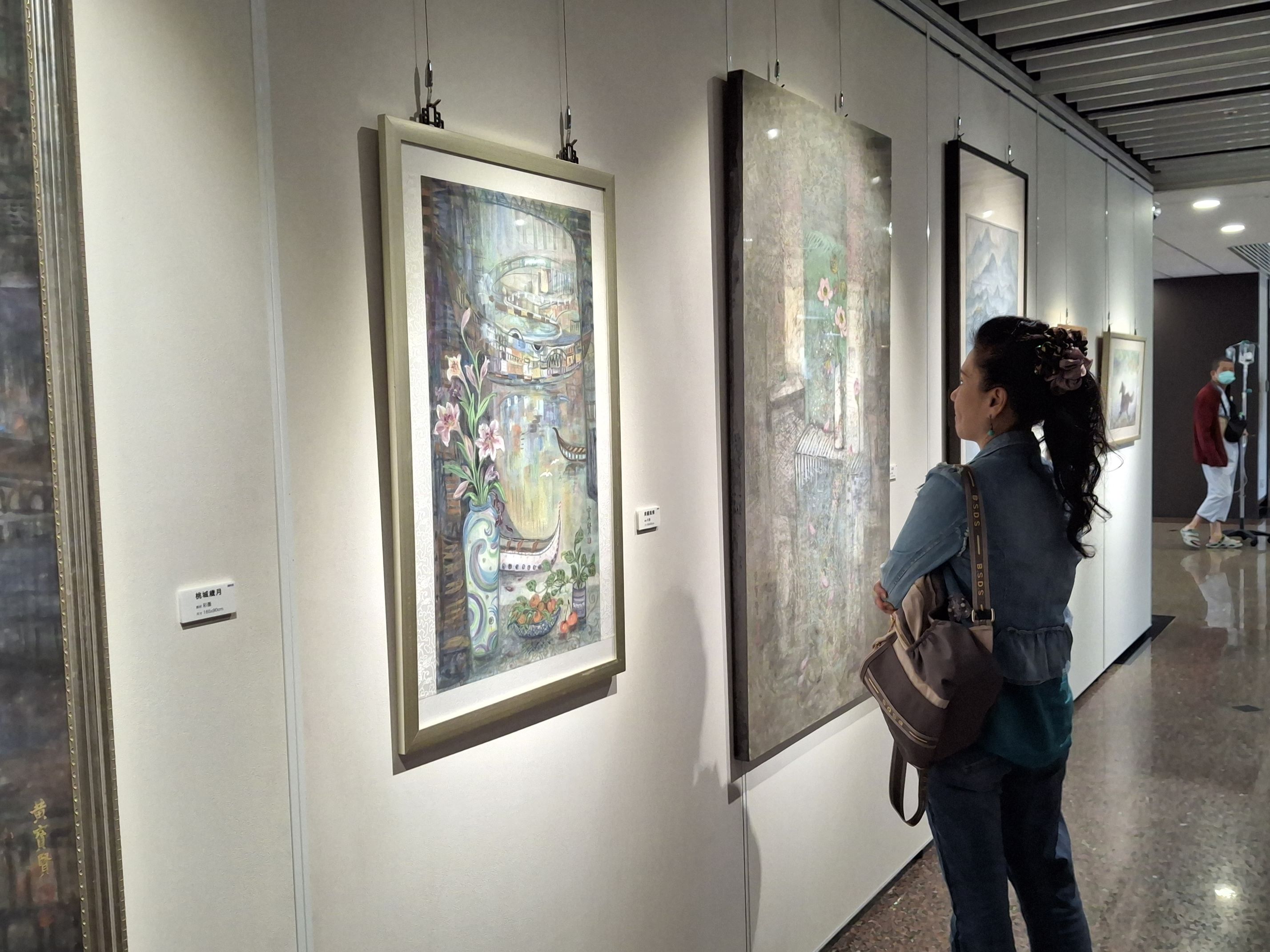 黃老師更以「骨法用筆」技法,透過線條的轉折與強弱變化,呈現剛柔並濟的節奏美感;並運用墨色的乾、濕、濃、淡、澤與彩墨交融,營造層次豐富、氣韻生動的畫面效果。此次展覽以水墨為主,並輔以膠彩與壓克力作品,展現多元媒材交織的藝術表現。