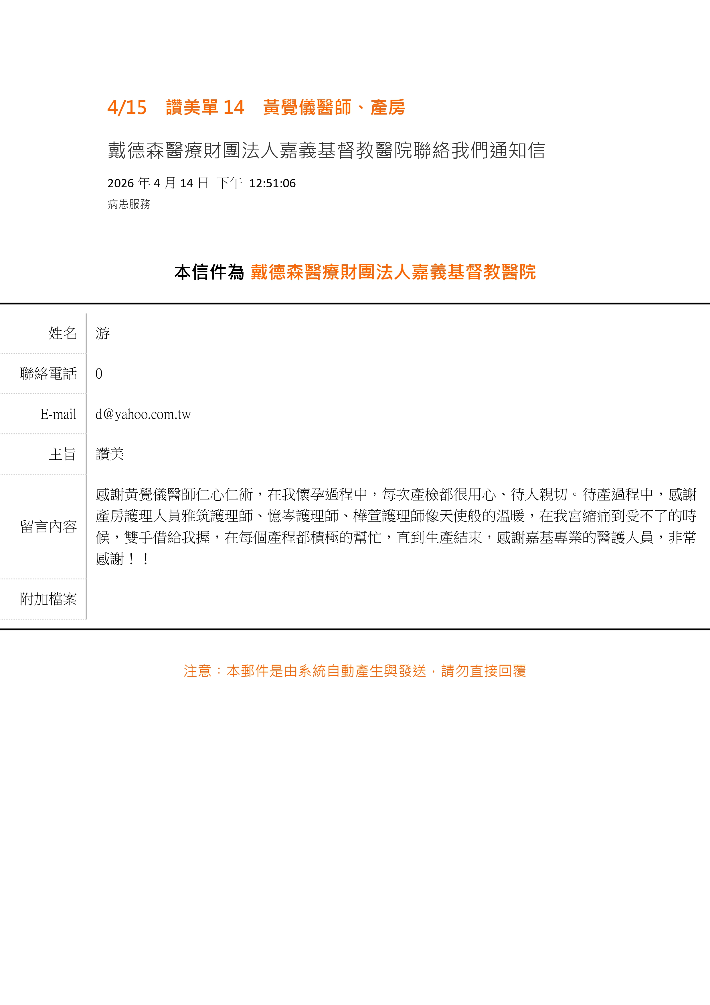 愛是永不止息- 來自病人的肯定及感謝 嘉基 婦產部黃覺儀醫師【仁心仁術 】
