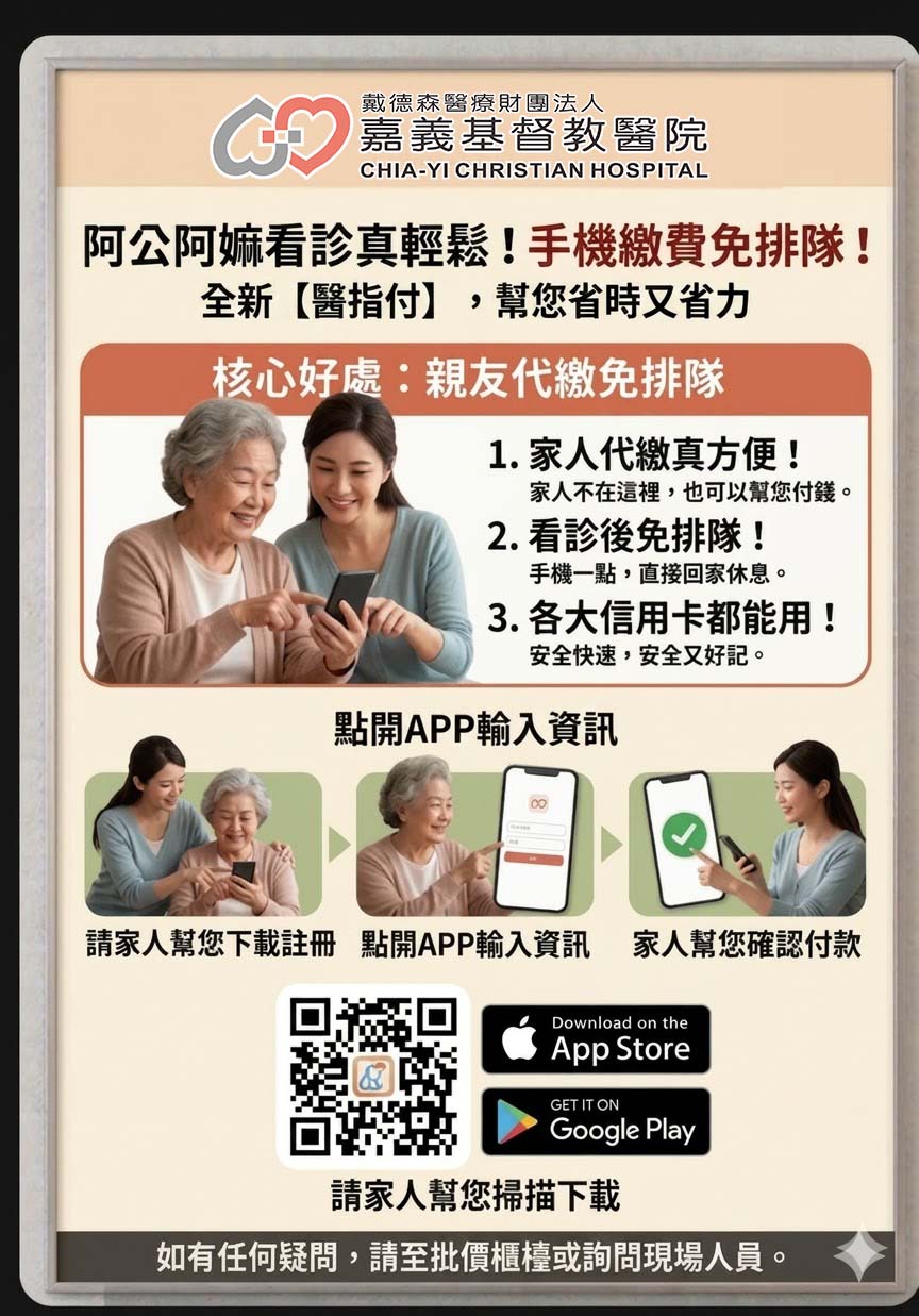 嘉基醫指付!手機繳費免排隊,看診真輕鬆!