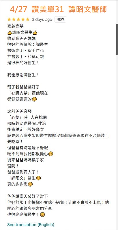 愛是永不止息- 來自家屬的肯定及感謝 嘉基 心臟血管內科譚昭文醫師【妙手回春】