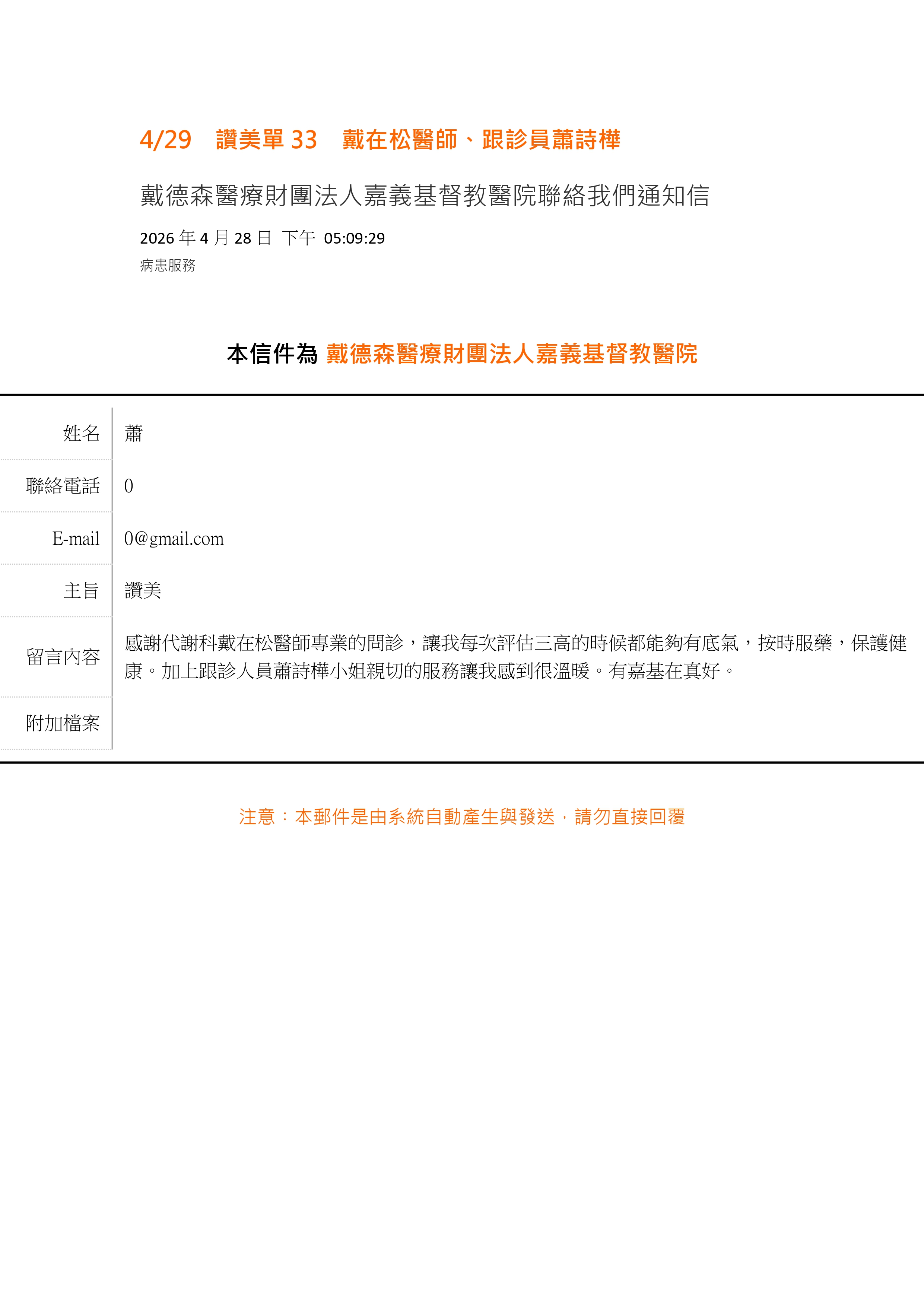 讚美 新陳代謝科 戴在松醫師