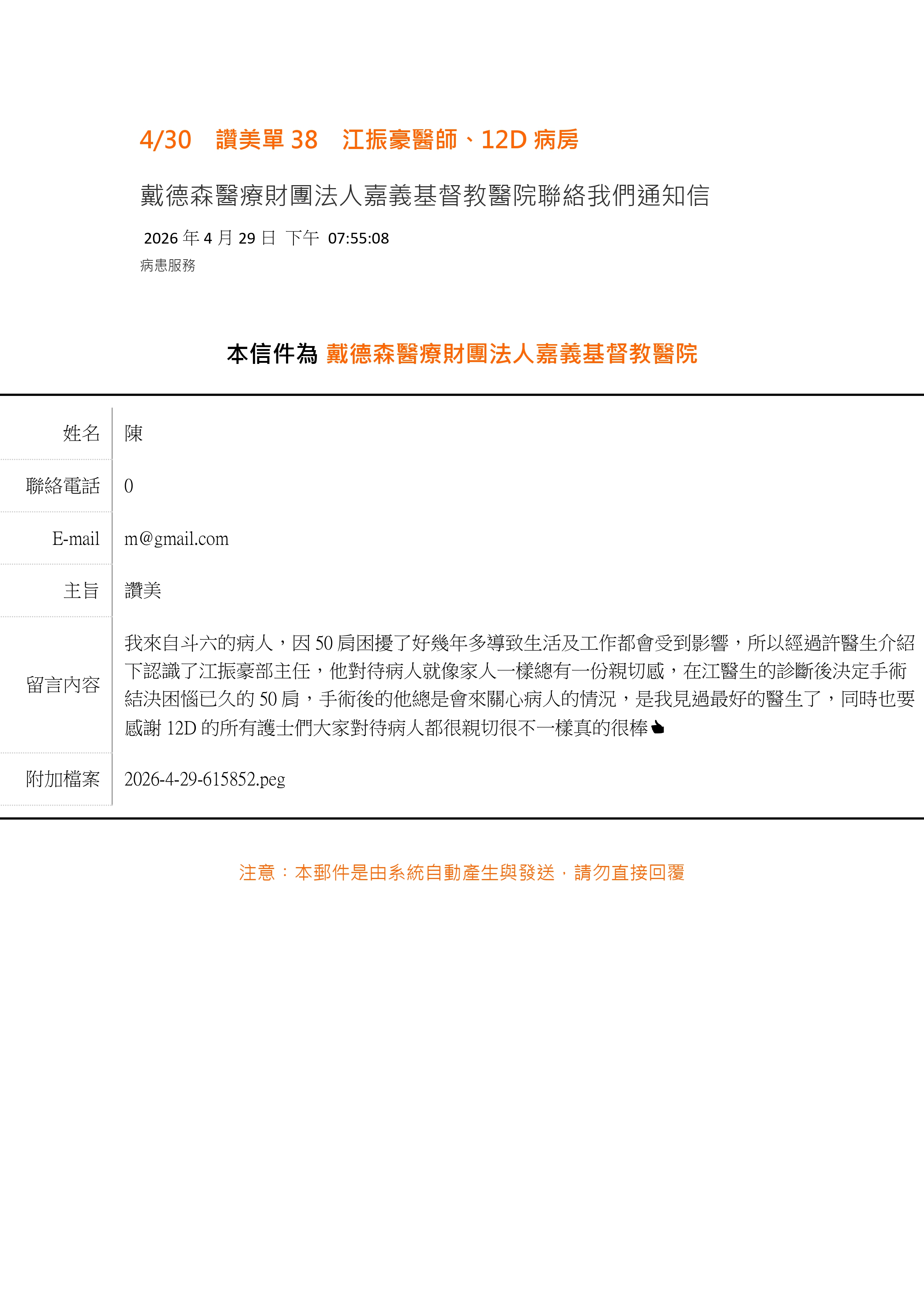 愛是永不止息- 來自病人的肯定及感謝 嘉基 骨科部江振豪醫師【視病如親】