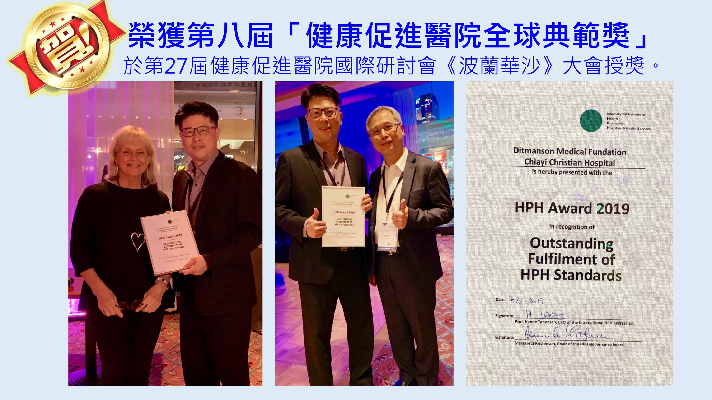 賀本院榮獲第八屆HPH「健康促進醫院全球典範獎」與國際醫療典範獎