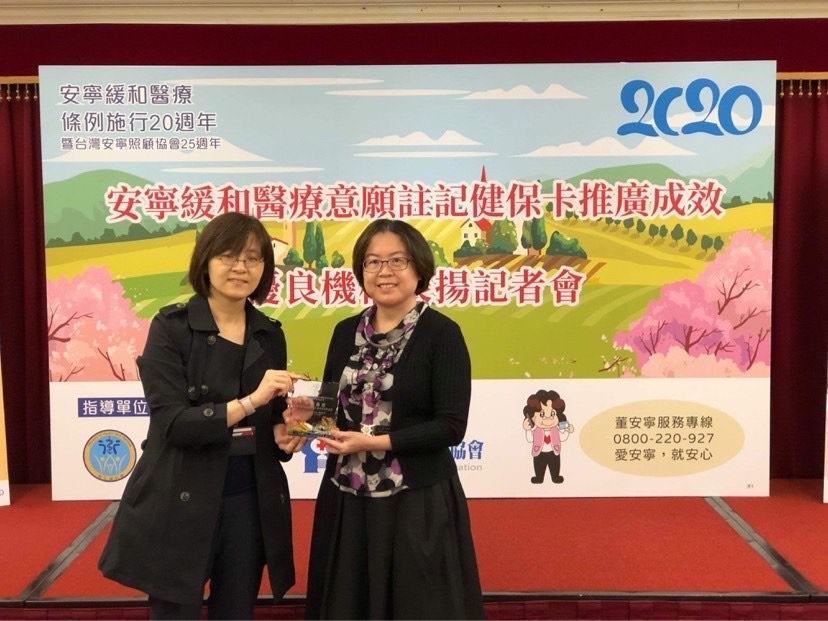 衛生福利部安寧緩和醫療意願註記健保卡推廣成效優良機構表揚 獲頒優良團體