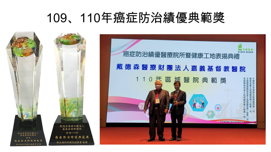 恭賀!本院榮獲國民健康署頒發109、110年癌症防治績優醫療院所『典範獎』