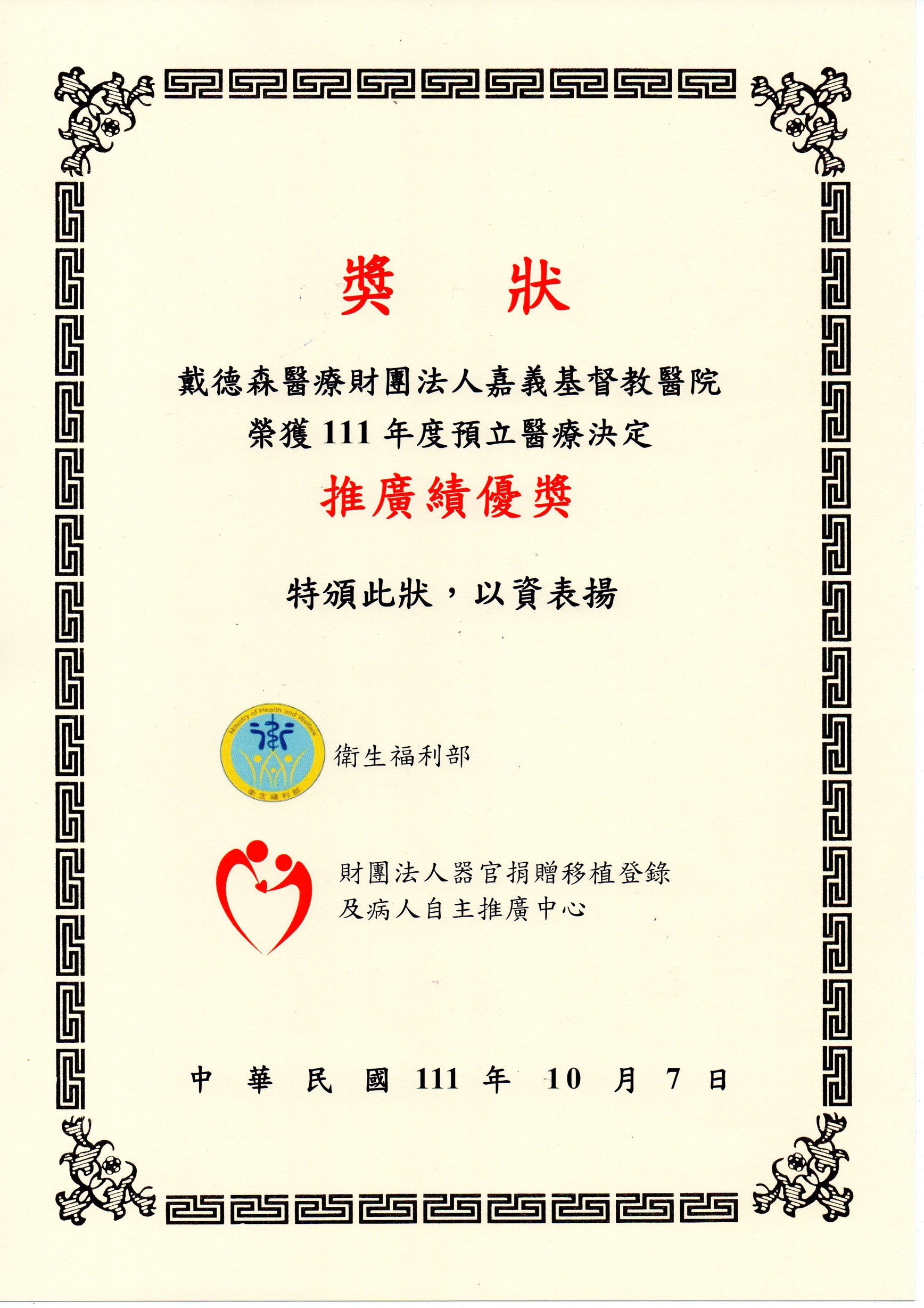 恭賀本院榮獲「111年度預立醫療決定 推廣績優獎」
