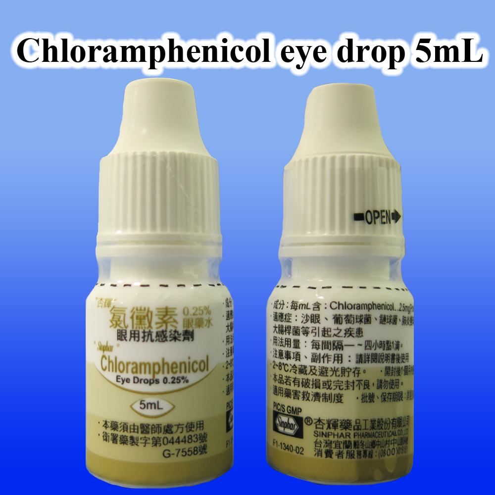 每瓶5mL,含Chloramphenicol 0.25%