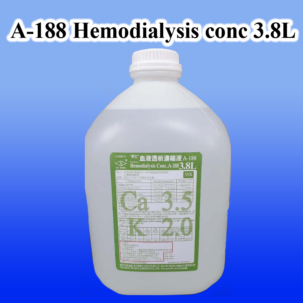 每桶3.8公升,每公升含Calcium chloride dihyrate 9mg、Magnesium chloride hexahydrate 3.56mg、Potassium chloride 5.22mg、sodium chloride 210.7mg、dextrose monohydrate 77mg、Acetic acid glacial6.31mg