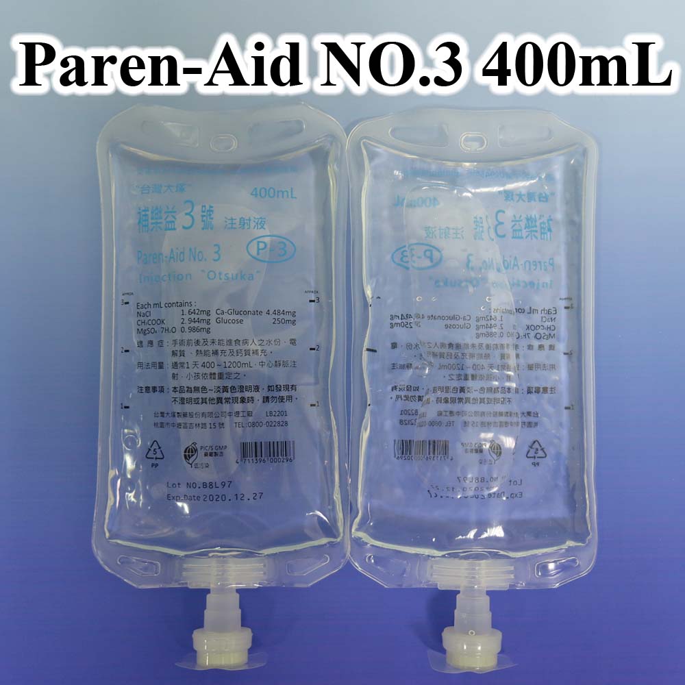 每瓶含400mL,每mL含 POTASSIUM ACETATE 2.944mg、 SODIUM CHLORIDE 1.642mg、 GLUCOSE 250mg、 MAGNESIUM SULFATE 0.986mg、 CALCIUM GLUCONATE 4.484mg。