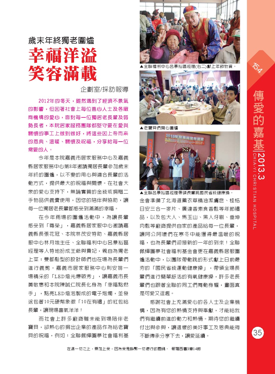 歲末年終獨老圍爐 幸福洋溢 笑容滿載