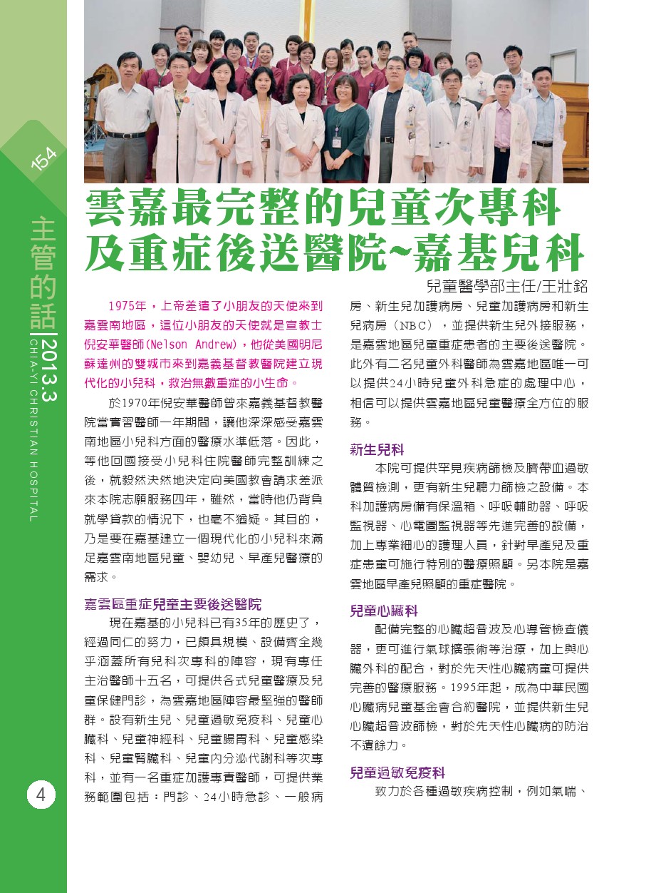 雲嘉最完整的兒童次專科及重症後送醫院~嘉基兒科