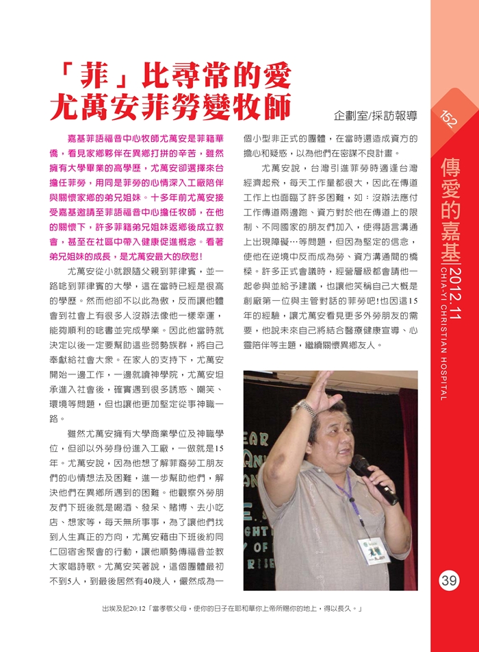 「菲」比尋常的愛 尤萬安菲勞變牧師