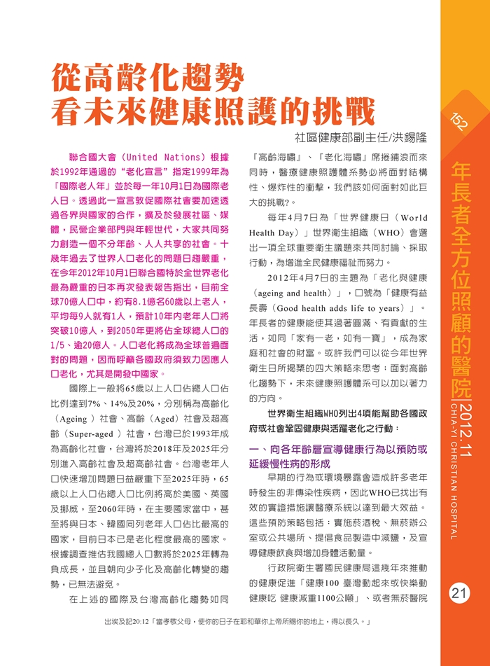 從高齡化趨勢看未來健康照護的挑戰