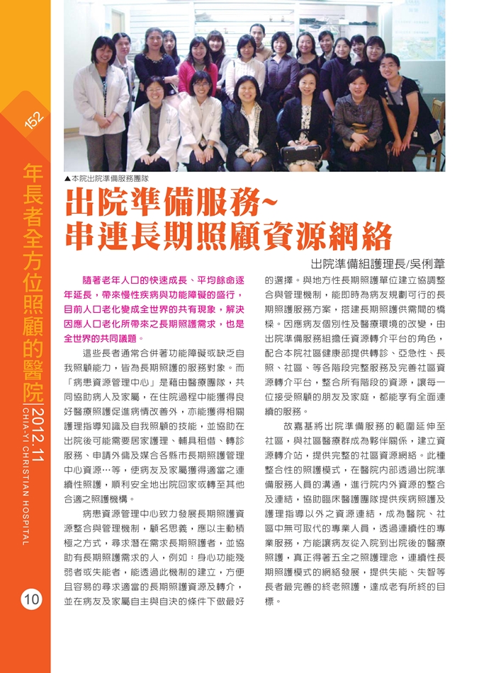 出院準備服務串連長期照顧資源網絡