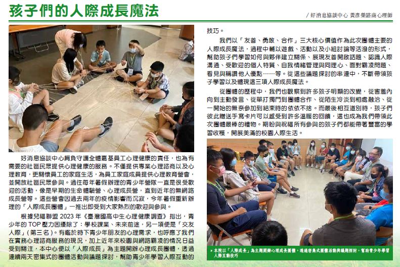 受到關注,本中心便以「人際成長」為主題開辦心理成長團體,透過