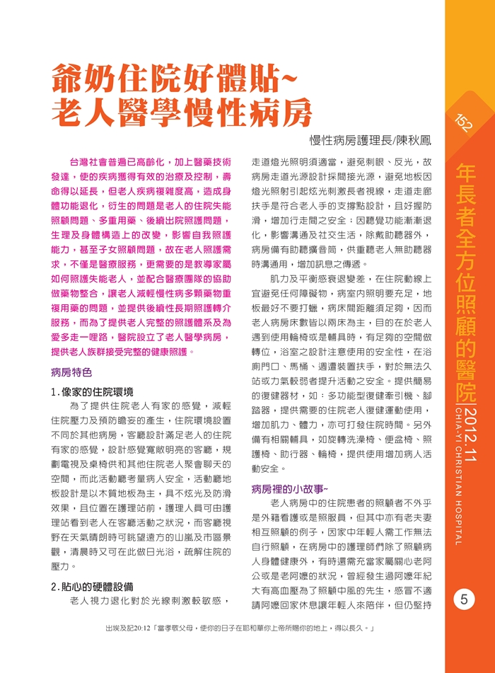 爺奶住院好體貼老人醫學慢性病房
