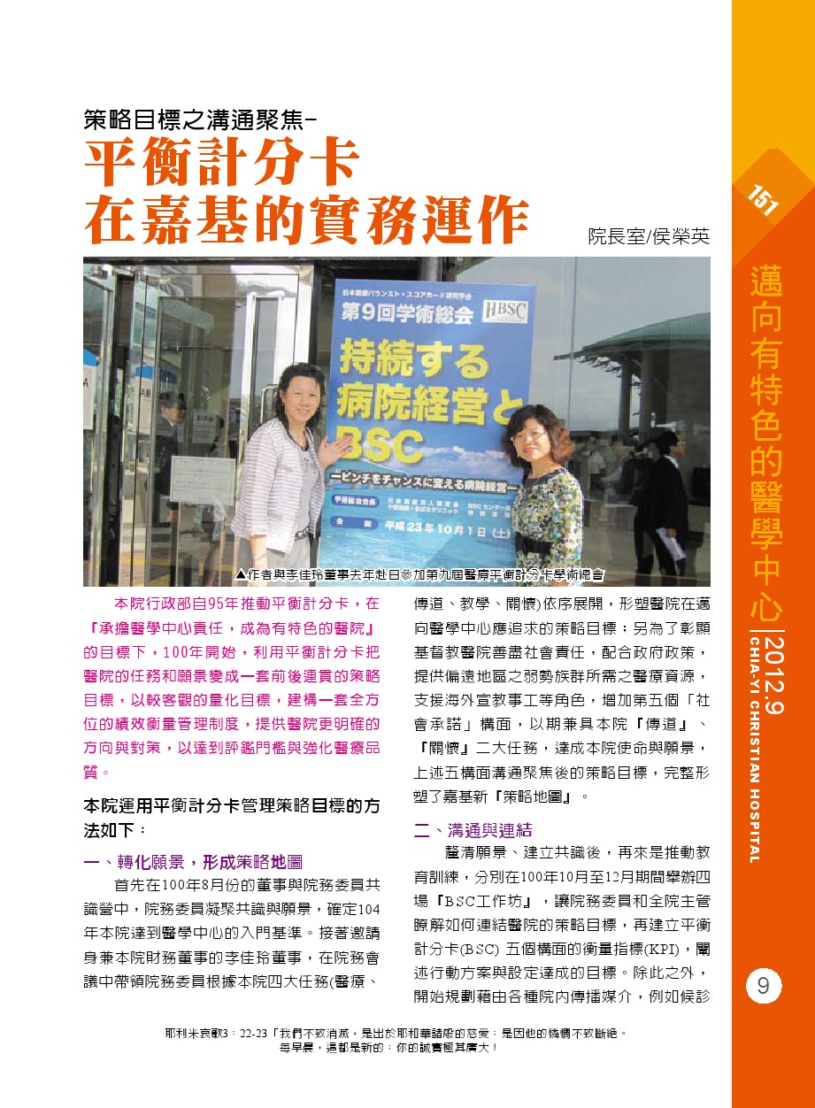 策略目標之溝通聚焦-平衡計分卡在嘉基的實務運作