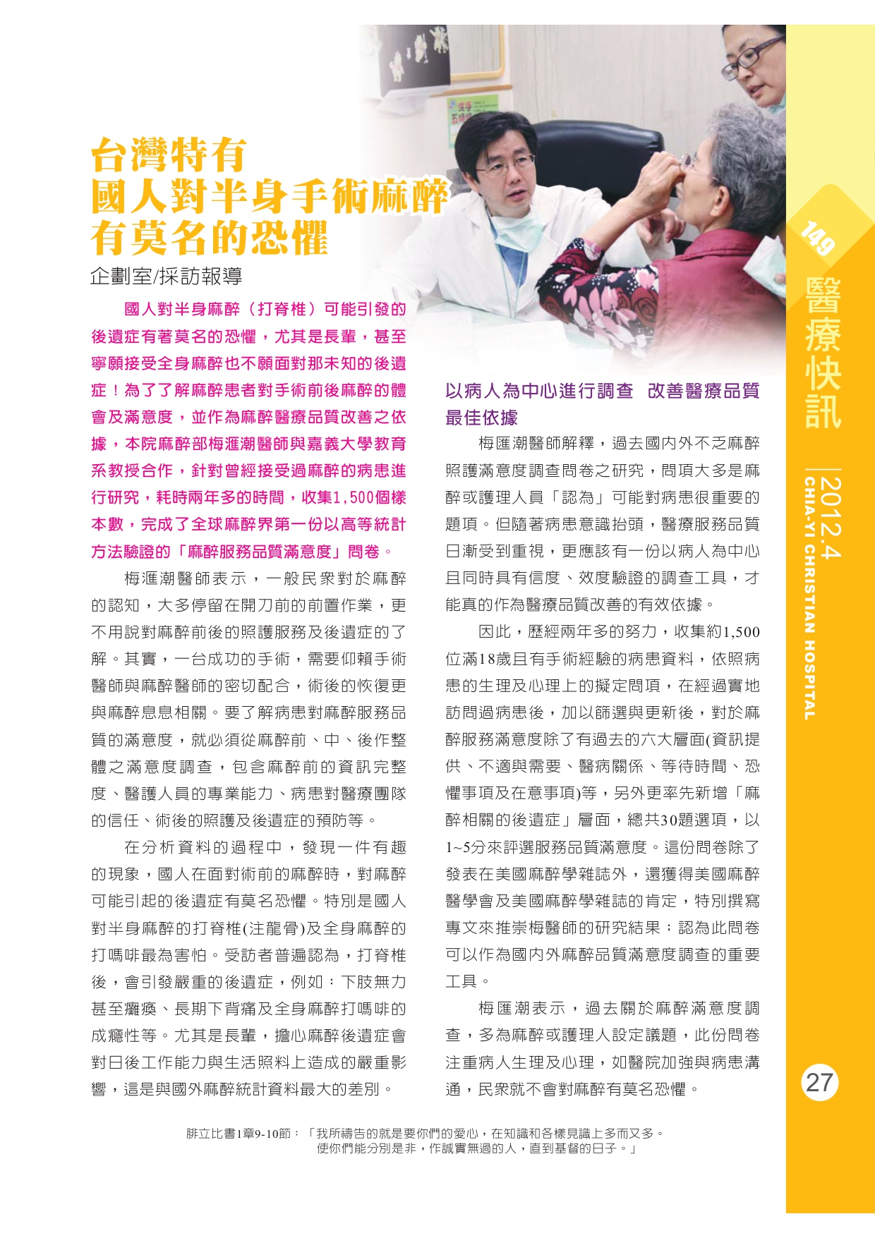 台灣特有 國人對半身手術麻醉有莫名的恐懼