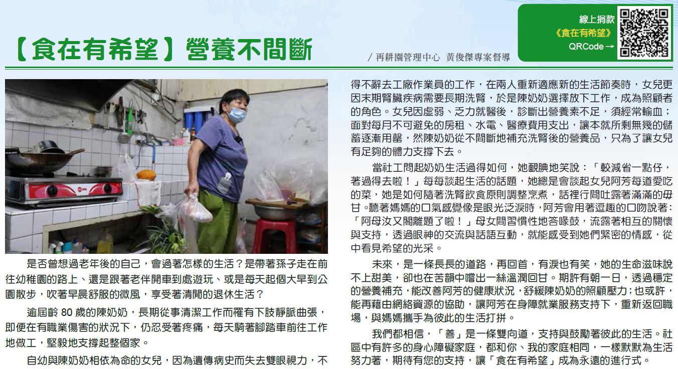 努力著,期待有您的支持,讓「食在有希望」成為永遠的進行式。