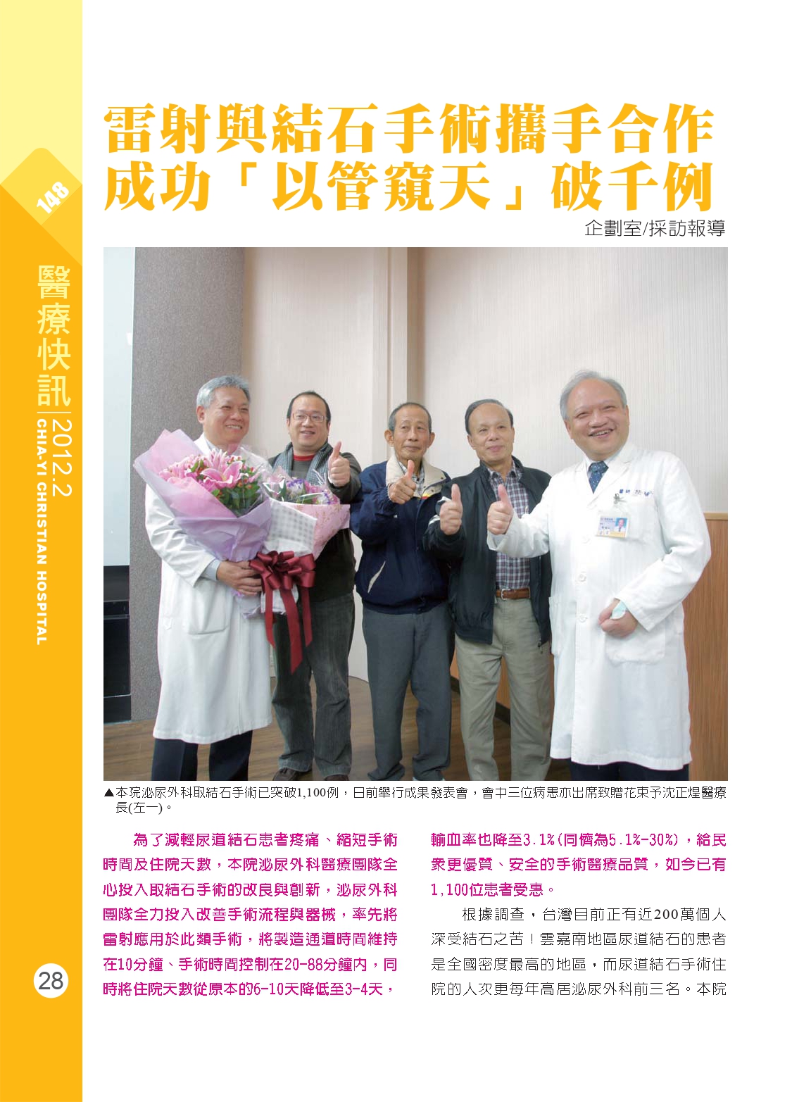 雷射與結石手術攜手合作 成功「以管窺天」破千例