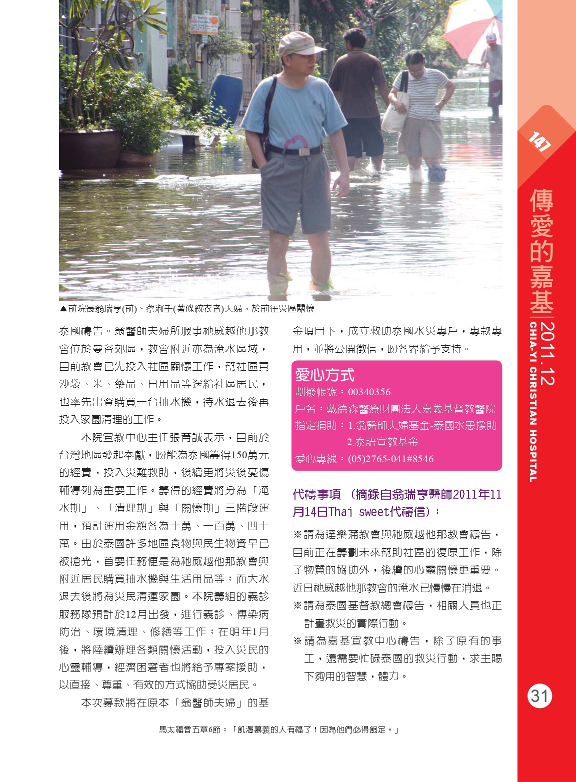 請為泰國水患禱告、奉獻