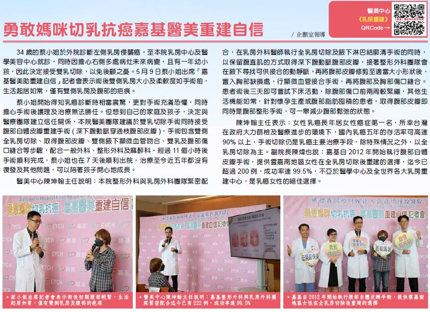 勇敢媽咪切乳抗癌嘉基醫美重建自信