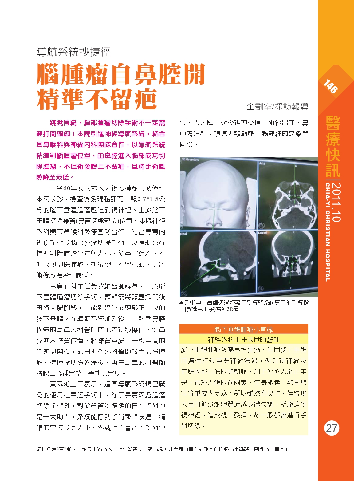 導航系統抄捷徑 腦下垂體腫瘤自鼻腔開 精準不留疤