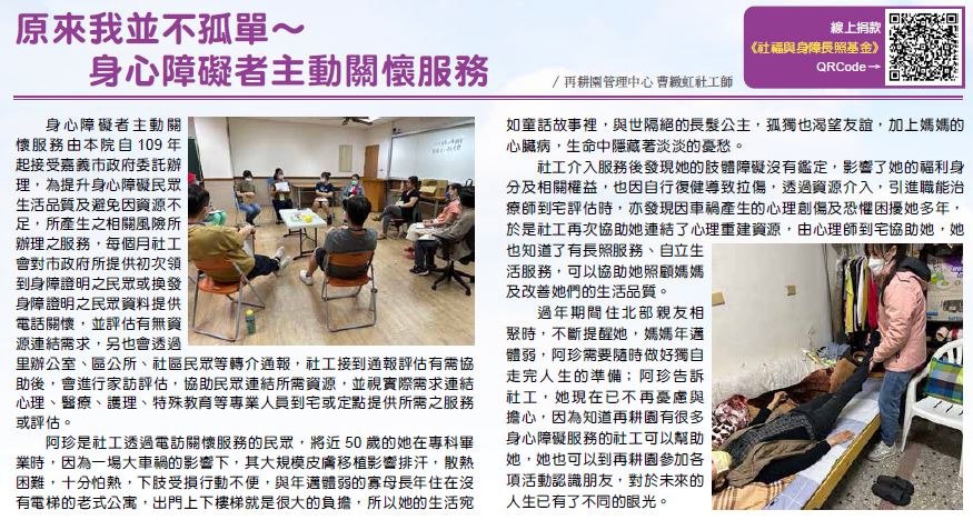 原來我並不孤單~身心障礙者主動關懷服務