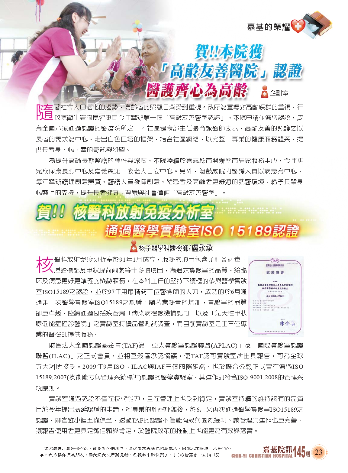嘉基院訊